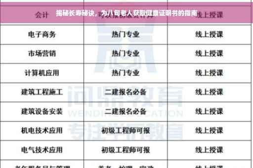 随着人口老龄化趋势加剧,关注老年人的健康问题日益成为社会焦点,本文将为您揭示如何为80岁以上老人获取健康证明书,让您的长辈在晚年生活中拥有更好的健康保障,让我们一起探讨长寿秘诀,为老年人的幸福生活助力!