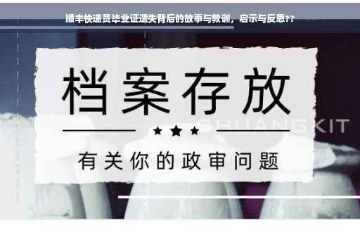 顺丰快递员毕业证丢失的故事揭示了职场中的小插曲和生活中的启示。这位快递员不慎遗失了重要的毕业证,引发了一系列波折和反思。事件提醒人们要妥善保管个人重要证件,也展现了顺丰公司对于员工个人事务的关注和关怀。这个故事不仅关乎个人的成长,更体现了职场中的人性关怀与责任感的重要性。丢失毕业证背后,是对细节的关注、对责任的承担和对生活的深刻启示。