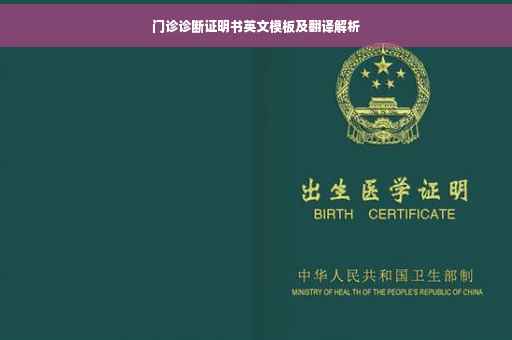 摘要:,,门诊诊断证明书英文版是一份由医疗机构出具的重要文件,用于证明患者在门诊接受诊疗后所得出的诊断结果。该文件通常包括患者的基本信息、就诊时间、诊断结论以及医生的建议等内容。该证明书的存在对于患者的治疗、康复以及后续的医疗纠纷处理等方面都具有重要意义。