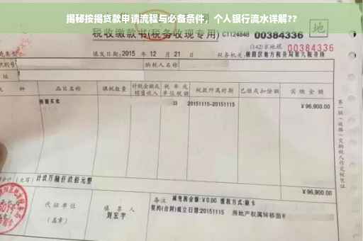 个人银行流水在按揭贷款申请过程中具有重要意义,本文详细介绍了按揭贷款中个人银行流水的相关知识,包括其重要性、查询方式、注意事项以及按揭贷款的申请流程和所需材料,希望读者能充分了解并按需准备相关材料,确保贷款申请的顺利进行。