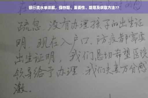 随着个人和企业金融交易的日益频繁,银行流水单作为记录账户资金往来情况的重要凭证,其保存期问题逐渐受到广泛关注,本文将详细介绍银行流水单保存期的意义、相关规定、获取方法以及注意事项,以帮助广大民众更好地了解和运用银行流水单。