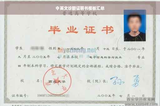 摘要:,,本文提供中英文诊断证明书模板,旨在帮助需要撰写诊断证明书的人快速生成标准、规范的证明书。模板内容包括患者基本信息、诊断结论、医生建议等必要元素,既方便医生撰写,也便于患者了解自身病情及治疗方案。该模板的推出,有助于提高诊断证明书的书写效率,为医疗工作带来便利。