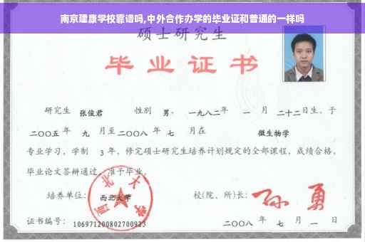 跟普通本科毕业证一样。如果学得好可以拿国外合作大学的学士学位证。根据不同学校的不同规定,有的学校不用出国就能拿到国外的学位,有的学校则规定必须出国。中外合作办学通常是指外国教育机构同中国教育机构在中国境内合作举办的以中国公民为主要招生对象的教育机构,目前所称的中外合作办学一般是指国家鼓励的在高等教育、职业教育领域开展的中外合作办学。办学方式:一是学历教育项目,必须通过统招考试,填报志愿,毕业后分别获得中外双方学校颁发的文凭(如:清华大学与澳大利亚国立大学合作举办管理硕士学位教育项目);一是非学历教育项目,无须填报志愿,参加学校自己举办的入学考试即可。中方学校修得相应学分后,通过语言考试后再被合作学校录取,毕业后获得外方学校颁发的文凭(如:中国农业大学与荷兰万豪劳伦斯坦瓦格宁根大学(原荷兰劳伦斯坦国际农学院)合作举办园艺专业非学历项目)注意:就读非学历教育项目的,若该项目未能获得教育部审核认证,即不能承认该项目所获学历。