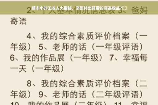随着互联网的快速发展和电商行业的繁荣,物流行业也迎来了前所未有的发展机遇,顺丰作为国内物流行业的佼佼者,其优质、高效的服务赢得了广大消费者的信赖,在这样的背景下,顺丰小时工也逐渐走进人们的视野,本文将深入探讨顺丰小时工的收入情况,为广大关心这一群体的人们揭示真实的收入证明。
