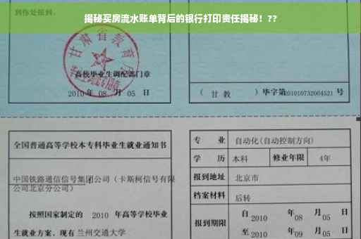 揭秘购房过程中的流水账单细节,引出关键问题:究竟由哪家银行负责打印?文章详细阐述了购房者在准备银行流水证明时需要注意的事项,包括了解不同银行之间的规定差异,以及正确选择打印银行流水账单的途径。帮助购房者避免不必要的困扰,顺利办理购房手续。