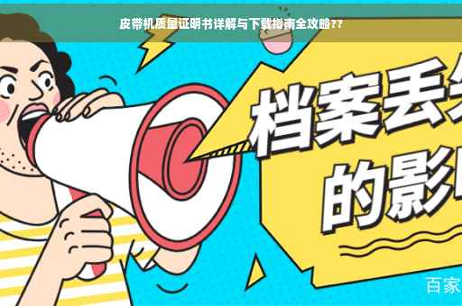 摘要:本篇文章提供了关于皮带机质量证明书的详细解释和下载指南。文章介绍了皮带机质量证明书的重要性,内容包括质量标准的详细说明、检验方法及结果等。文章还提供了下载和使用皮带机质量证明书的步骤和注意事项。对于需要了解皮带机质量证明书的读者,本文是一份有用的参考资料。