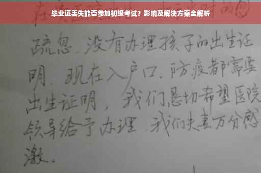 摘要:毕业证丢失是否影响报考初级考试?毕业证丢失可能会影响报名资格。但不必过于担心,可通过提供其他证明文件如学籍档案、成绩单等作为替代证明。建议尽快进行毕业证补办或开具相关证明。确保自身权益,顺利参加考试。解决方案包括联系学校补办证明或寻求教育部门协助,以确保顺利报名。
