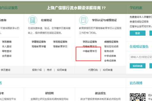 上饶广信银行流水翻译是一项重要的金融翻译工作,关乎个人和企业的经济利益,以及国际金融交流,本文详细介绍了上饶广信银行流水翻译的相关内容,包括流水概述、翻译重要性、特点与难点、翻译流程、应用场景以及提高翻译质量的措施,希望本文能帮助读者更好地了解和运用上饶广信银行流水翻译,促进金融交易的顺利进行。