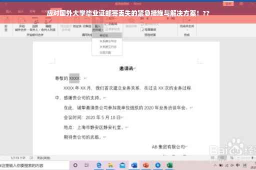 国外大学毕业证邮寄丢失,需立即采取行动。联系毕业学校或国际学生办公室,报告毕业证丢失情况,并提供相关证明文件。向学校申请正式证明或复印件,并咨询是否需要报警。联系邮寄公司查询物流信息,了解丢失原因。务必保持冷静,遵循学校和专业机构的指导,采取适当措施解决问题。