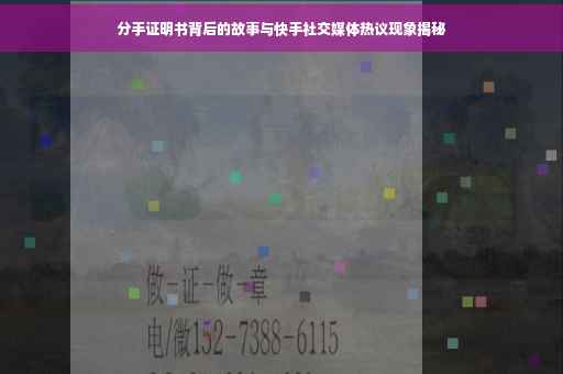 摘要:分手证明书在快手社交媒体上引发热议,背后隐藏着许多故事。这一话题引发了广泛的讨论和关注,人们纷纷分享自己的经历和感受。通过快手这一平台,分手证明书成为了一种现象,反映了现代人在情感世界中的纠葛和变迁。