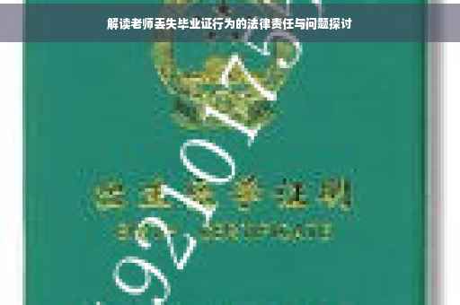 一则关于“老师丢失毕业证”的新闻引起了广泛关注,此事不仅令家长和学生感到不满,也引发了社会各界的热议,人们纷纷探讨这一事件中的法律责任和法律后果,我们需要从法律角度对这一问题进行深入剖析。