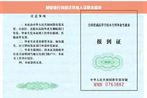在邮储银行提前还贷时,提交收入证明是必不可少的一环,收入证明是评估借款人还款能力的重要依据,银行通过收入证明来确认借款人的经济状况,从而判断其是否具备提前还贷的能力,一份完整、真实的收入证明有助于借款人顺利办理提前还贷手续。