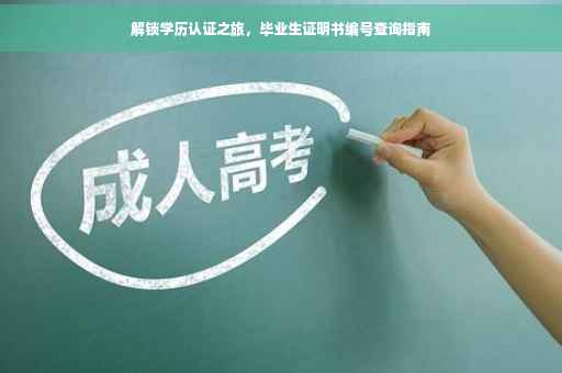 随着社会的不断发展,学历认证已成为人们关注的焦点之一,作为毕业生,我们需要提供自己的毕业证书和编号来证明自己的学历,查询毕业生证明书编号显得尤为重要,本文将为你详细介绍查询毕业生证明书编号的操作步骤及注意事项,帮助你顺利完成学历认证。