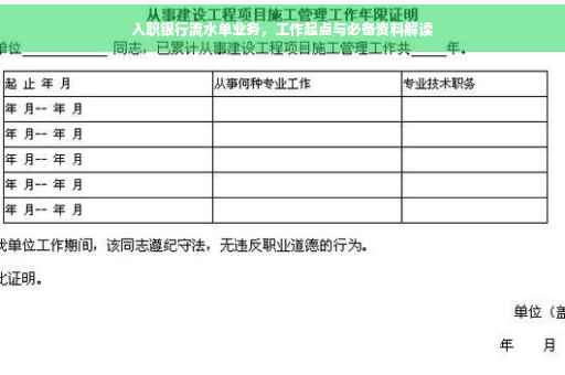 随着就业市场的竞争日益激烈,入职流程中的各项准备工作愈发受到求职者的关注,银行流水单作为入职过程中的重要环节之一,对于求职者来说具有不可忽视的作用,本文将详细介绍入职银行流水单业务的相关知识,帮助求职者更好地了解并准备这一环节。