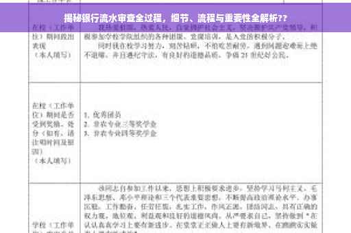 随着金融行业的快速发展,银行流水作为个人和企业经济活动的直接体现,越来越受到监管部门的关注,审查银行流水不仅有助于保障金融市场的健康运行,还能维护广大民众的利益,本文将详细介绍监管部门审查银行流水的全过程,帮助公众了解其中的细节和流程。