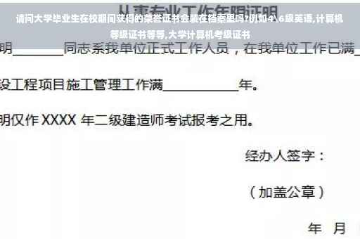 大学毕业生在校期间获得的荣誉证书会,例如4\6级英语,计算机等级证书等等.这些东东是国家认证的,当然会有记录的,当然不是把证书放在里面,放不下,但是里面有你的记录:如XX年,XX以XX分通过了国家英语四级等.