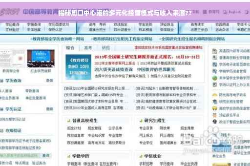 随着全球经济的不断发展,港口作为物流、贸易、交通的重要枢纽,其运营效率和盈利能力越来越受到关注,周口中心港作为地区性重要港口之一,其收入来源的多元化和可持续性成为了其成功运营的关键,本文将深入探讨周口中心港的收入来源,揭示其多元化经营模式的成功之路。