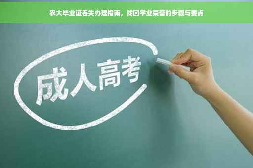 摘要:农大毕业证丢失,无需担忧,可按以下步骤办理找回学业荣誉。前往学校教务处或相关网站了解补办流程;准备身份证明、照片、学历证明文件等材料;提交材料至指定部门并缴纳相关费用;等待审核及证书制作;领取新的毕业证书。遵循此指南,一步步找回你的学业荣誉。