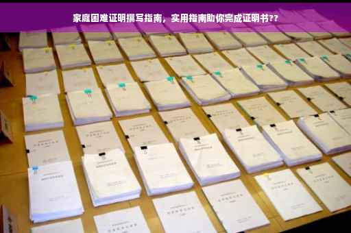 摘要:,,本指南旨在帮助撰写家庭困难证明书,为需要帮助的家庭提供明确的指导和建议。通过遵循本指南,申请者可以清晰地阐述家庭所面临的困难,包括经济、健康或其他方面的挑战。本指南包含撰写证明书的基本步骤、要点和注意事项,以确保申请者的家庭困难得到准确、全面且有效地表达。遵循本指南,将有助于申请者顺利获得所需的支持和援助。