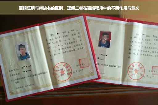 离婚证明书和判决书在离婚程序中具有不同的作用和意义。离婚证明书是用于证明婚姻关系已经解除的官方文件,而判决书则是法院对离婚案件作出的裁决。两者虽然相关,但并非同一概念。
