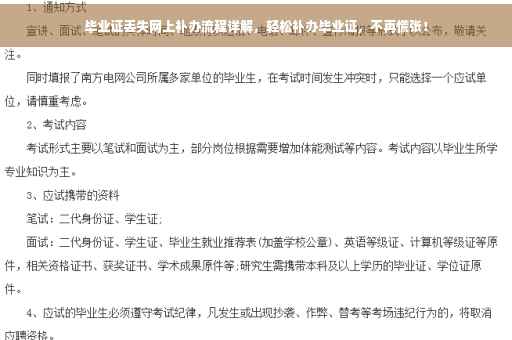 毕业证是我们在求学过程中的重要证明,丢失后虽然会带来一些不便,但只要我们按照正确的流程进行操作,就可以轻松解决这个问题,希望本文能帮助大家顺利补办毕业证,解决这一烦恼,今后若遇到类似情况,希望大家能够保持冷静,妥善处理。