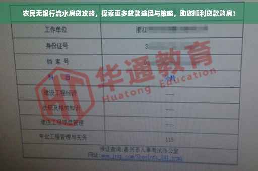 摘要:本篇攻略旨在为农民提供更多途径和策略来解决无银行流水导致的房贷难题。通过深入探索和研究,我们将介绍一些贷款途径和策略,帮助农民解决银行流水不足的问题,实现购房梦想。这篇指南将为您提供实用的贷款建议和解决方案,让农民在贷款过程中更加顺利。