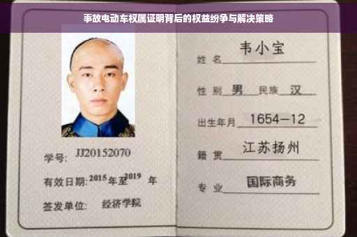 摘要:事故电动车的权属证明书是揭示事故背后权益纷争的关键证据。这篇摘要将详细介绍事故电动车的权属问题,探讨由此引发的争议,并提出解决之道。通过权属证明书的调查和分析,旨在明确事故责任归属,为纠纷双方提供合理的解决方案,确保公正和公平。