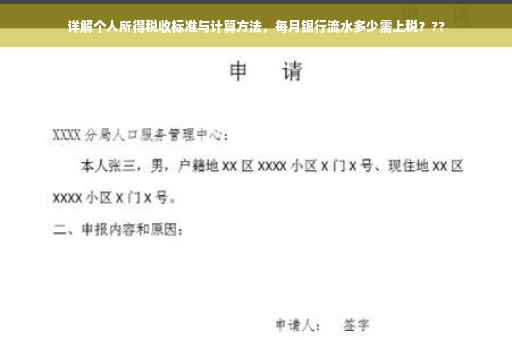 本文详细解读了个人所得税收标准与计算方法,以及每月银行流水多少需要上税的问题,希望大家能更好地了解税务政策,合理规划个人财务,降低税务风险,在实际操作中,务必关注国家税务政策的调整,确保个人财务的合规性。