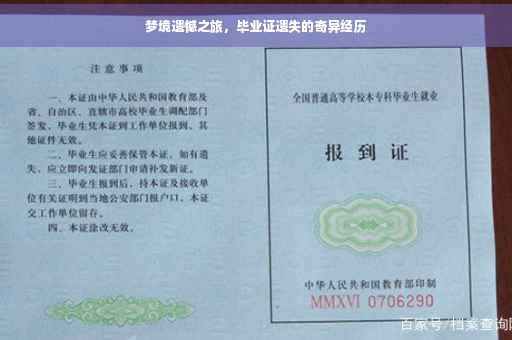 摘要:在梦境中经历毕业证遗失的遗憾,展开一场奇异旅程。梦中寻找失物,经历种种波折,感叹于梦境的无常和现实的遗憾。这场奇异经历让人难以忘怀,提醒着人们珍惜生活中的每一个细节,避免留下类似的遗憾。