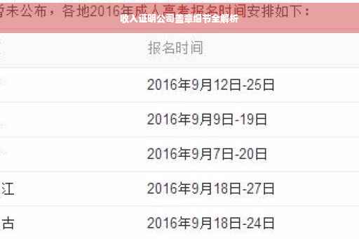摘要:本文将详细解析收入证明公司盖章的细节。文章介绍了收入证明的重要性以及公司盖章的作用,同时强调了盖章的合法性和真实性。通过解析细节,帮助读者了解如何正确获取收入证明并确认其有效性,包括公司名称、部门、职位和收入等信息的准确性以及盖章的清晰度等。还提醒读者注意保密和合规性等问题。本文旨在帮助读者了解收入证明公司盖章的细节,确保证明的真实性和有效性。