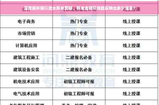 摘要:本文将深度解析银行流水账单的奥秘,探讨银行流水账单的重要性及其功能。通过本文,您将了解银行流水账单能打印的具体内容,包括时间跨度、交易明细等。还将介绍如何正确解读银行流水账单,以及需要注意的细节和常见问题。本文旨在帮助读者更好地管理个人财务,了解银行流水账单的实际作用。