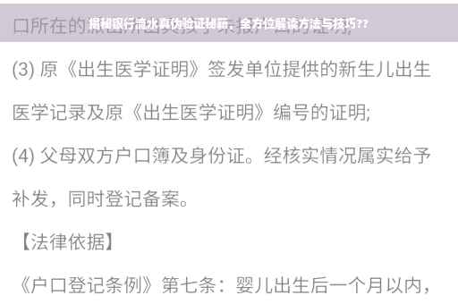 摘要:本文将揭秘银行流水真伪验证的秘籍,全方位解读验证方法与技巧。通过阅读本文,您将了解到如何识别银行流水的真伪,掌握有效的验证方法和技巧,确保您的财务安全。本文旨在帮助您更好地管理个人财务,防范金融风险。