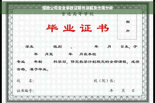 摘要:本文详细解释了保险公司安全事故证明书的相关内容。该证明书是保险公司在处理安全事故时出具的重要文件,用于证明事故发生的实际情况。本文介绍了安全事故证明书的用途、内容、格式及撰写要点,帮助读者更好地了解和使用该证明书,以便在保险理赔过程中提供必要的证据和资料。
