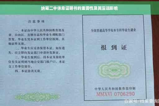 在当今社会,随着教育竞争的日益激烈,学生们的学习压力越来越大,纳雍二中作为一所优秀的学校,对学生的身心健康十分重视,休息证明书作为学校出具的一种重要证明文件,在学生休息、健康管理及教育评价等方面具有举足轻重的地位,本文将详细介绍纳雍二中休息证明书的作用、内容及其影响。