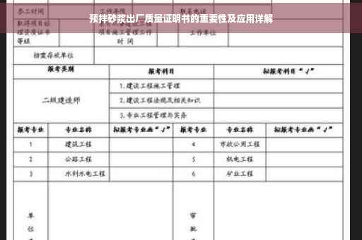 随着建筑行业的飞速发展,预拌砂浆作为一种高效、环保的建筑材料,其应用越来越广泛,预拌砂浆出厂时,厂家会出具一份质量证明书,以证明其产品质量符合相关标准和规定,本文将详细介绍预拌砂浆出厂质量证明书的重要性及应用情况。