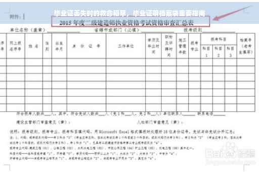摘要:本指南着重介绍了毕业证明的重要性,针对毕业证丢失的情况,提醒毕业生档案袋成为救命稻草。本指南提供关于如何正确处理毕业证丢失问题的方法和建议,帮助毕业生顺利解决相关困扰。通过本指南,毕业生可以了解如何有效利用档案袋中的材料来证明自己已经顺利毕业,避免因毕业证丢失而带来的不便和困扰。