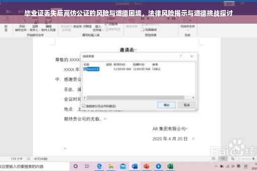 在繁忙的现代生活中,我们时常面临各种意外情况,其中之一便是证件丢失,毕业证作为我们学习生涯的重要证明,一旦丢失,可能会对我们的工作与生活产生重大影响,部分人在面对这种困境时,却选择了一条错误的道路——高仿公证,这不仅涉及法律问题,更是对道德的严峻挑战,本文将深入探讨毕业证丢失后,选择高仿公证的危害及法律风险,以警示大众。