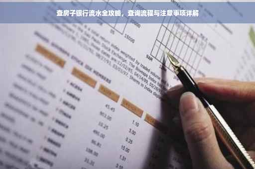 摘要:本文将全面解析查询房子银行流水的流程与注意事项。通过简单步骤,包括登录银行官网、前往银行柜台等,您将能够轻松查询房子银行流水。本文还将提醒您注意保护个人信息,确保查询过程的安全性,以及了解相关法律规定,避免因不当操作而造成不必要的麻烦。