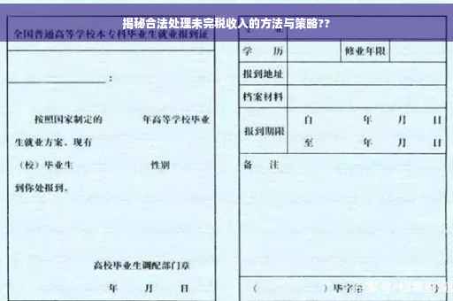 摘要:本文将揭示如何合法处理没有完税证明的收入。通过合法途径获取收入并妥善保存相关凭证,确保个人财务透明合规。在填写税务申报表时,正确申报所有收入并遵守税法规定,避免采取非法手段处理未完税收入。本文旨在帮助读者了解合法处理收入的方法,确保个人财务安全并遵守国家法律法规。