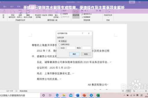 手机银行转账流水截图生成便捷,但在操作过程中需注意信息安全、截图清晰度、真实性与合法性等问题,本文介绍了手机银行转账流水截图生成的方法及注意事项,希望能帮助大家更便捷地操作并避免不必要的麻烦,在实际使用过程中,如遇到问题,请及时咨询银行客服或专业人士协助处理。