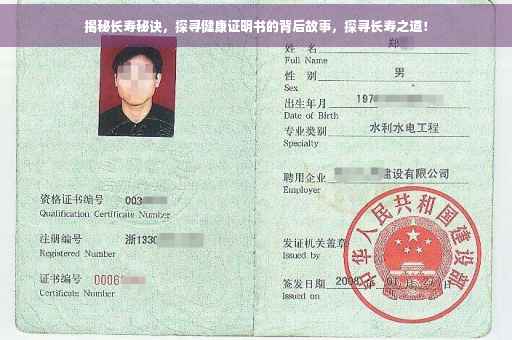 本文探讨了健康长寿的奥秘、80岁以上健康证明书的重要性以及背后的故事,通过揭示老年人的健康管理经验和生活智慧,我们不仅可以关注老年人的健康问题,还可以为自己的健康长寿提供有益的参考,让我们共同努力,为美好的晚年生活奋斗!