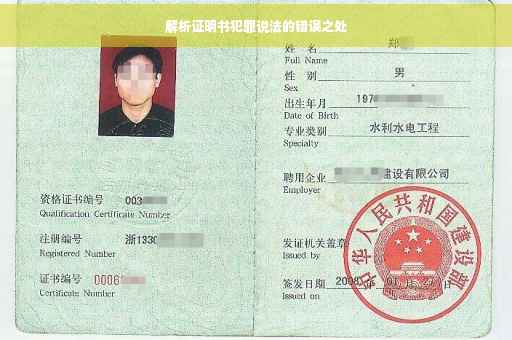摘要:,,本篇文章对“证明书犯罪”的说法错误之处进行解析。首先阐述“证明书犯罪”的概念及其背景,接着分析该说法在法律、逻辑和实践层面的错误,包括证明书的法律效力和证明标准的误用等问题。文章旨在澄清公众对“证明书犯罪”的误解,强调合法合规的重要性,并提醒公众在涉及法律问题时需审慎对待。
