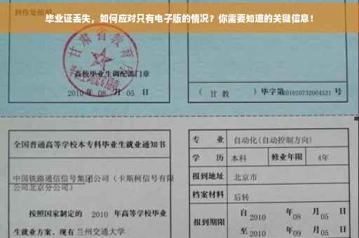 随着科技的进步,电子版毕业证书逐渐成为主流,当纸质版毕业证不慎丢失,只剩下电子版时,可能会遇到一些麻烦,对此情况,我们应该如何应对呢?