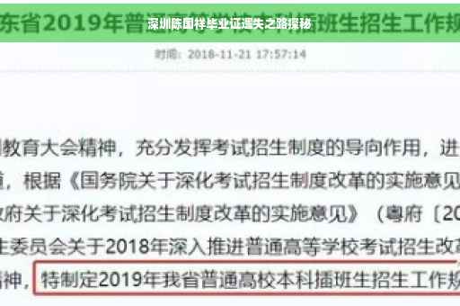 深圳陈国祥的毕业证遗失之路:陈国祥,深圳人,遭遇毕业证遗失的困境。面对这一突如其来的问题,他积极寻找解决之道,经历一系列曲折的补办过程。最终成功找回遗失的毕业证,解决了这一重要证件丢失所带来的困扰。这一事件提醒人们要妥善保管个人证件,避免类似事件的发生。