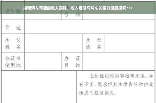 在当今社会,汽车不仅是一种交通工具,更是生活品质的象征,越来越多的人希望通过拥有一辆车来提升自己的生活品质,购车并非一件简单的事情,收入证明是购车过程中不可忽视的重要因素。