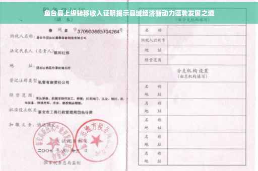 摘要:鱼台县的上级转移收入证明反映了县域经济的新动力。这份证明展示了该县在经济领域取得的积极进展,证明了上级政府对鱼台县的支持和投入。这种转移收入对于推动县域经济的发展起到了重要作用,为当地带来了新的机遇和挑战。这一证明标志着鱼台县正朝着更加繁荣和稳定的经济发展方向前进。