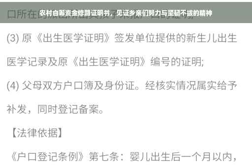 这份农村自筹资金修路证明书,不仅仅是一份证明文件,更是乡亲们努力与坚韧不拔的精神的见证,让我们共同为农村地区的道路建设点赞,为乡亲们的努力与付出致敬,我们也要呼吁更多的人关注农村地区的道路建设,为农村地区的发展贡献自己的力量,让我们携手共进,共同推动农村地区的发展,共创美好未来!