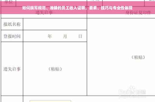 员工收入证明是企业为员工出具的一种重要证明文件,在撰写过程中,我们需要关注信息的真实性、准确性和完整性,遵循一定的格式和规范,本文详细解析了如何撰写一份规范、准确的员工收入证明,希望能帮助您更好地了解和完成这项工作。