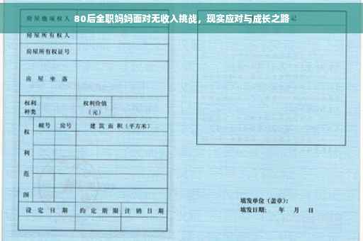作为一个自媒体作者,我深知每个时代都有其独特的挑战和机遇,随着社会的快速发展,越来越多的年轻人选择成为全职妈妈,这其中就包括许多80后的年轻妈妈们,当这些全职妈妈们面临无收入证明的情况时,如何面对现实与挑战就显得尤为重要,本文将探讨这一群体的现状、面临的挑战以及应对策略。