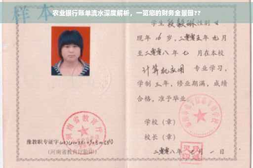 摘要:通过解析农业银行账单流水,全面了解个人财务概况。账单流水详细记录了账户的资金流入流出情况,包括存款、取款、转账等交易信息。通过查看账单流水,可以掌握个人收支平衡状况、消费习惯及潜在风险点。还可以发现不必要的支出,合理规划个人财务,实现财务自由。农业银行账单流水是财务管理的重要工具,助你洞悉财务概况。